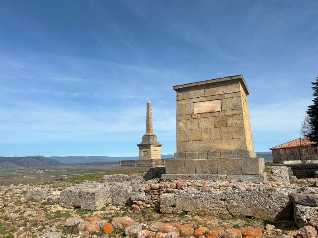 En la visita lo primero que se ve es el monumento inacabado a los héroes de Numancia (1842), que se erige sobre un caldarium doble (sala de baños caliente) de unas pequeñas termas de la ciudad de época romana. En esta misma zona se aprecia también el monolito conmemorativo del “Ejército de Tierra a los héroes de la gesta de Numancia en el 2150 aniversario y a los que, a lo largo de todos los tiempos, dieron su vida por España”, tal y como reza en una placa.